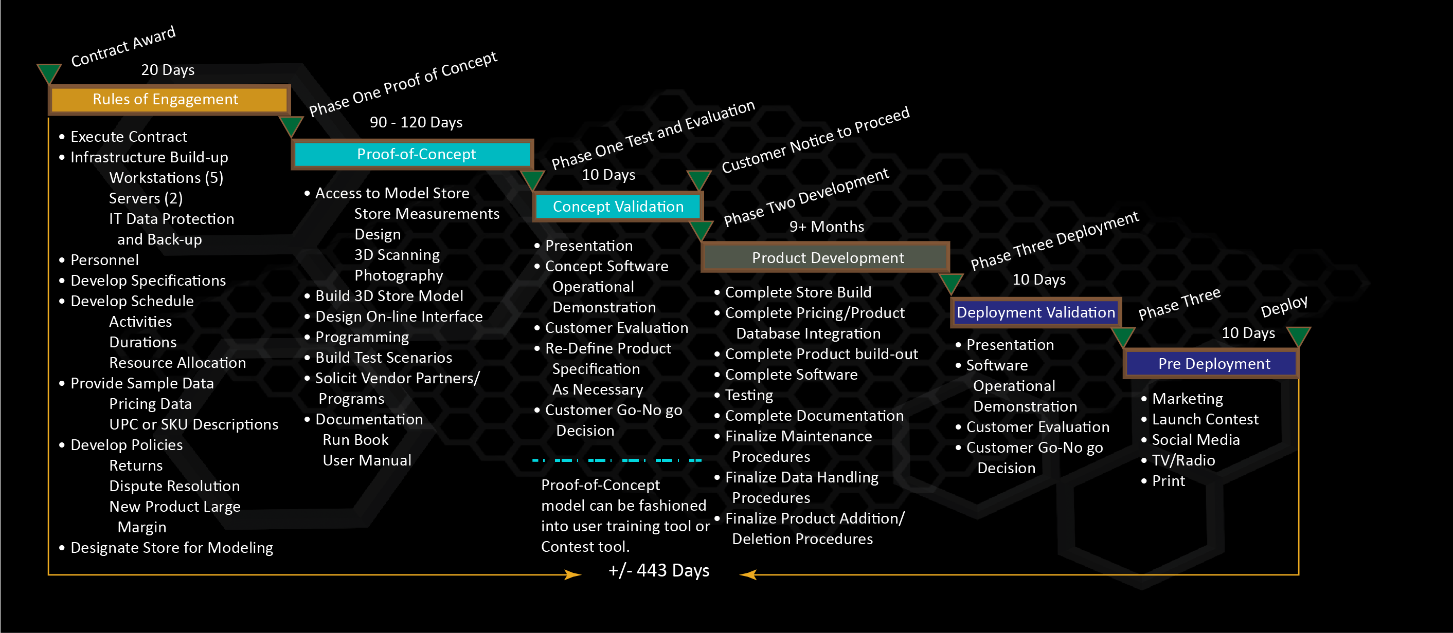Three phased approach to provide measurable gates of performance